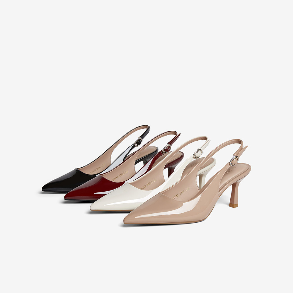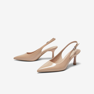 千百度牛漆皮细高跟时装 女新款 尖头包头后空绝美凉鞋 气质百搭 凉鞋