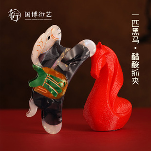 饰发饰雅致礼物 中国国家博物馆一匹黑马醋酸抓夹创意礼品马造型装由