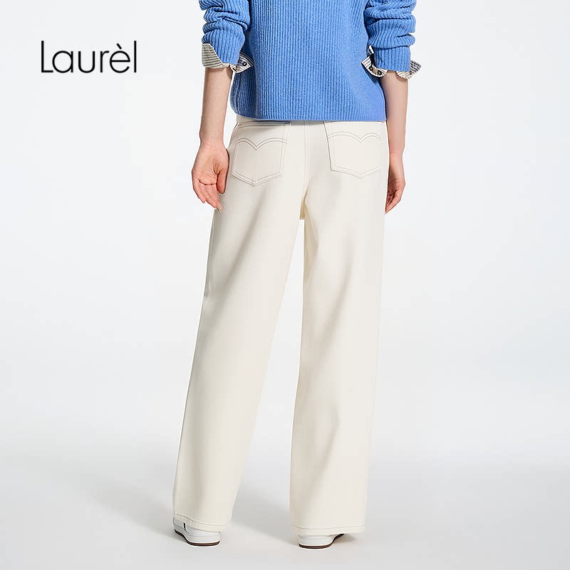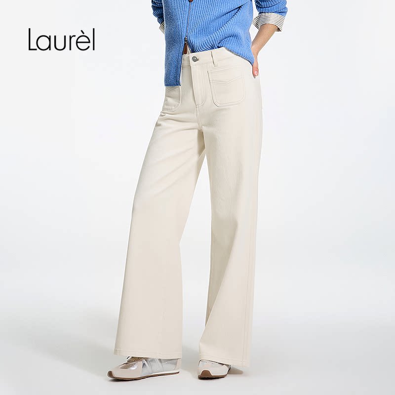 Laurel劳芮26春新款 高腰阔腿白色牛仔裤 LWD356K003DX 长绒棉由