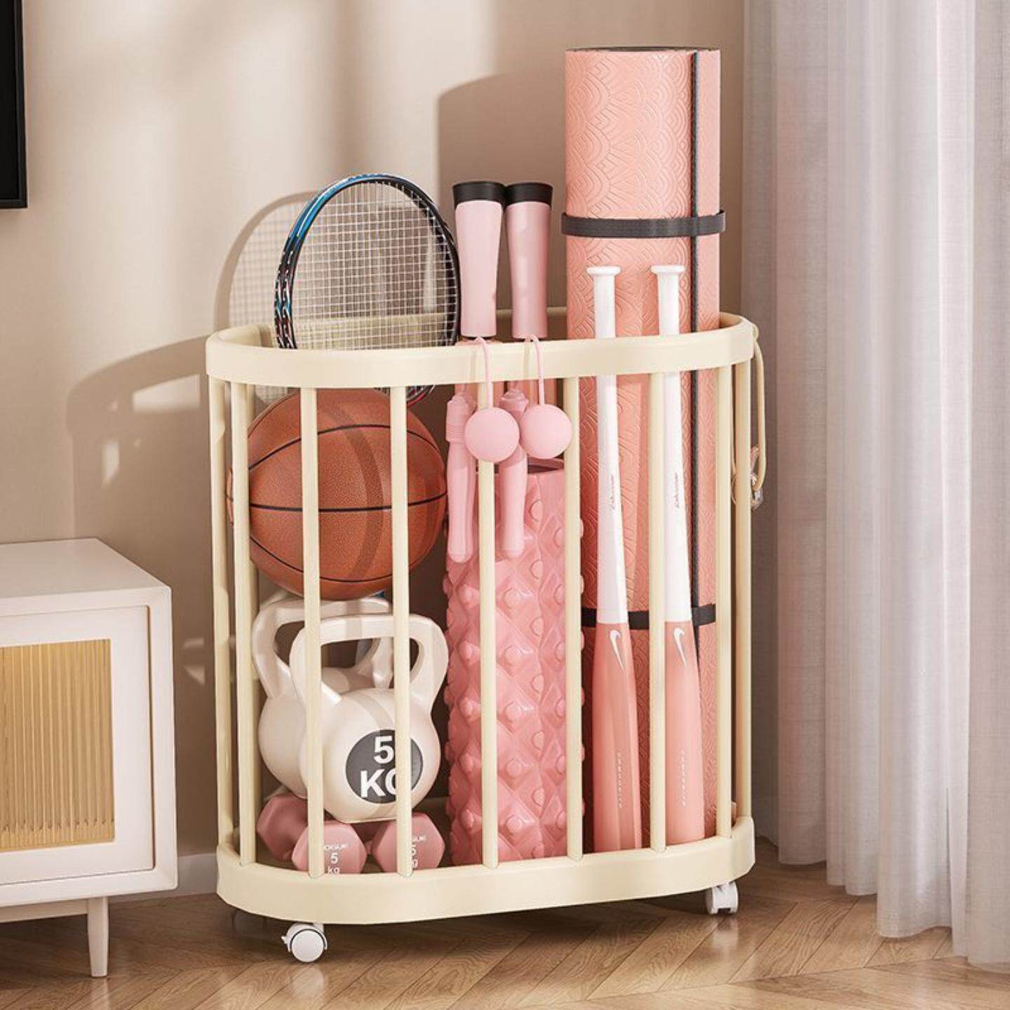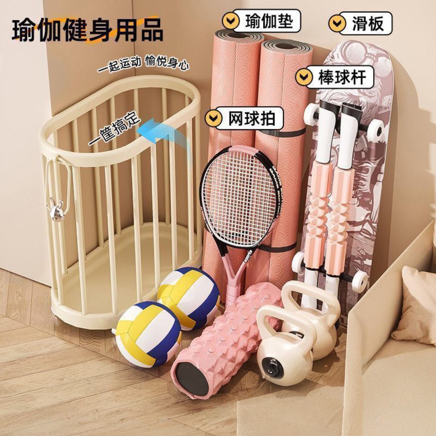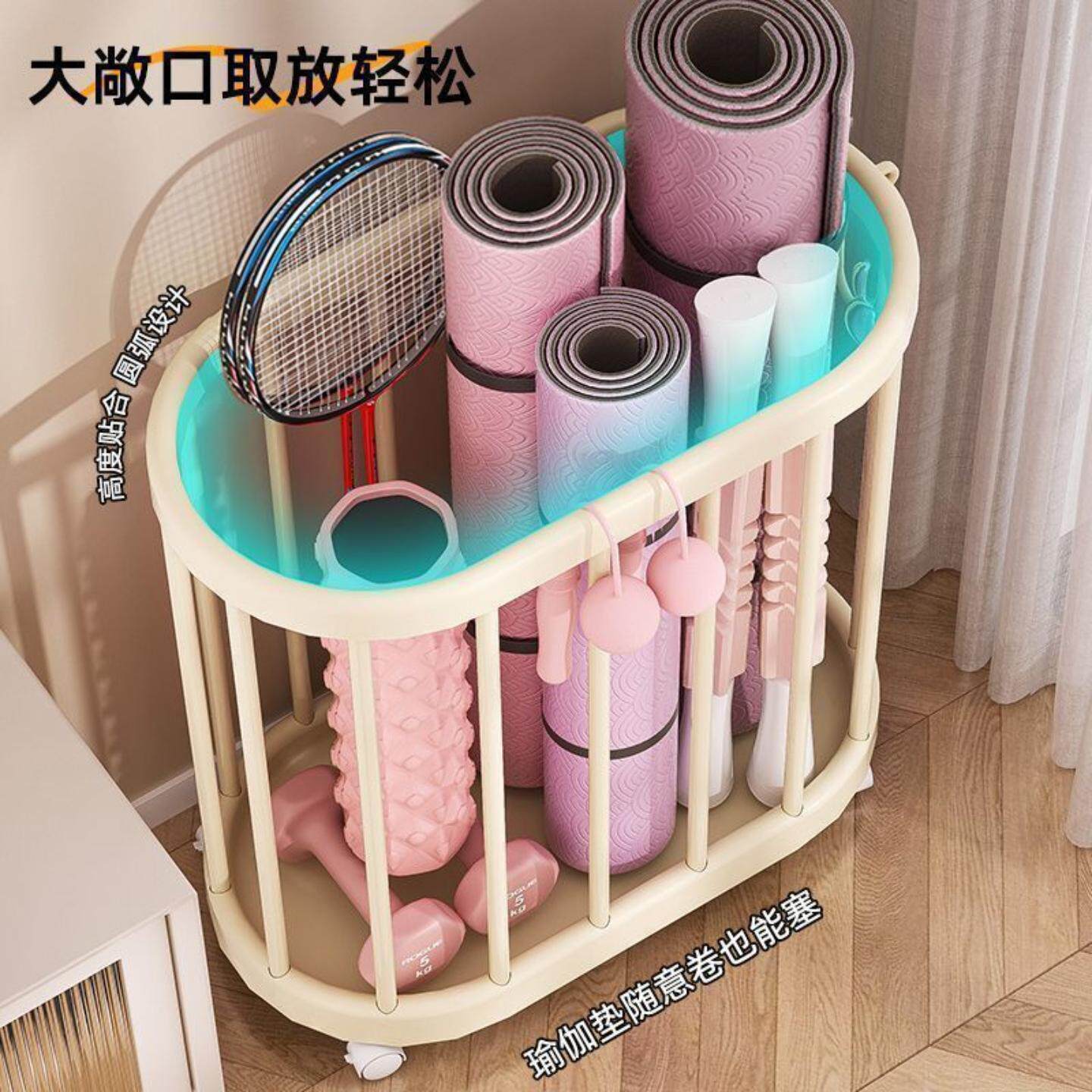 篮球羽毛球健身器材收纳筐置物架产品 球类瑜伽垫收纳框带轮装由