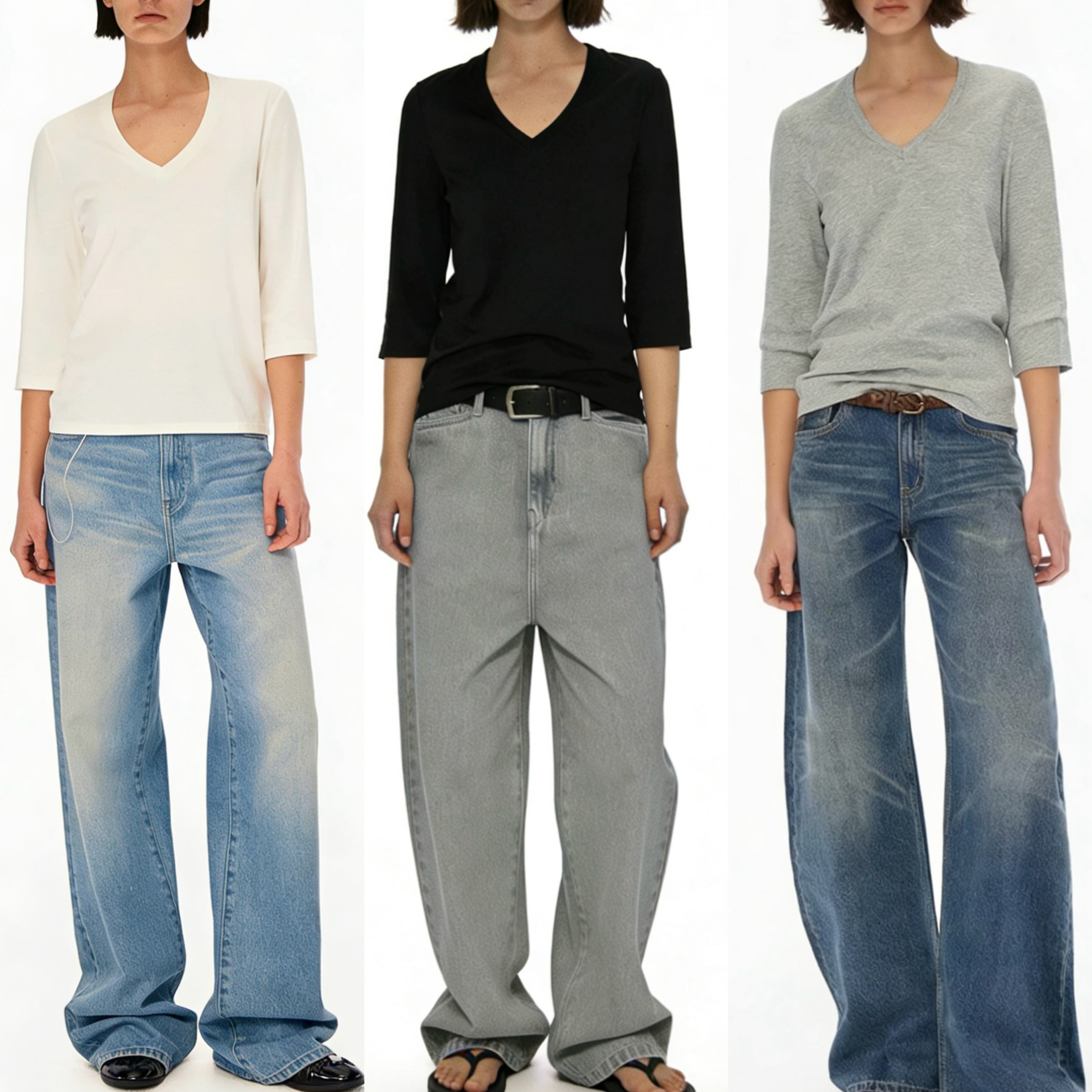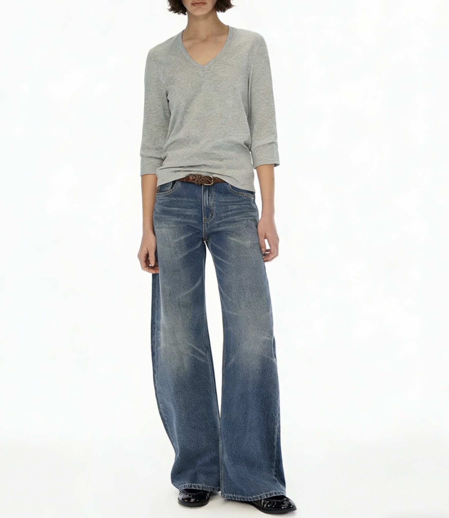 现货 莱赛尔面料深V轻柔触感经典 七分袖 百搭基础t恤 WEEEECHAN