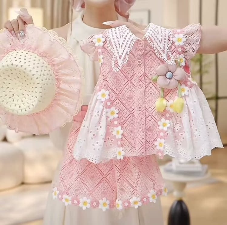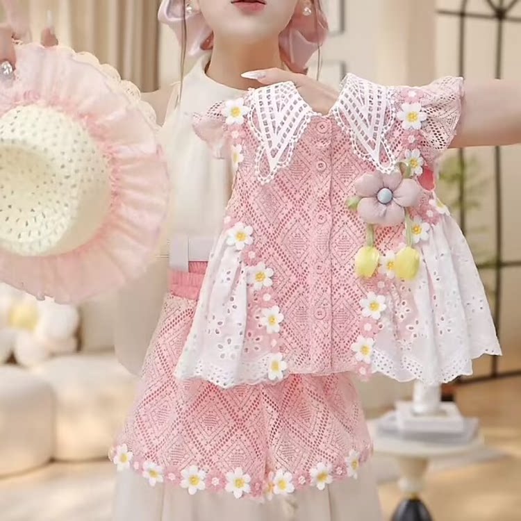 为您提供商品镂空领立体花朵提花短裤 2026女童韩夏季 新款 甜洋气无袖 两件套 套装的详细介绍,