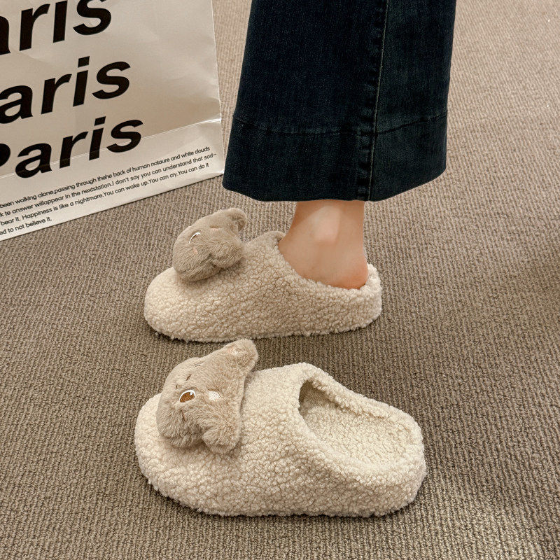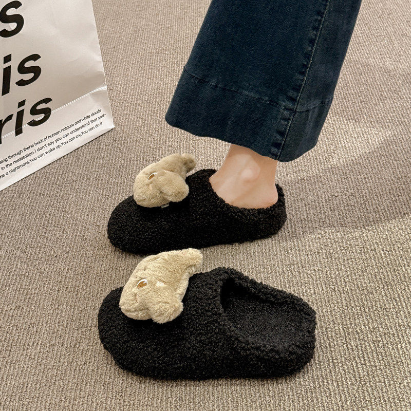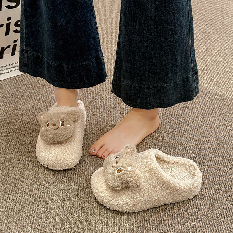 可爱小熊毛毛拖鞋 冬季 保暖厚底居家勃肯懒人棉拖鞋 女包头外穿新款