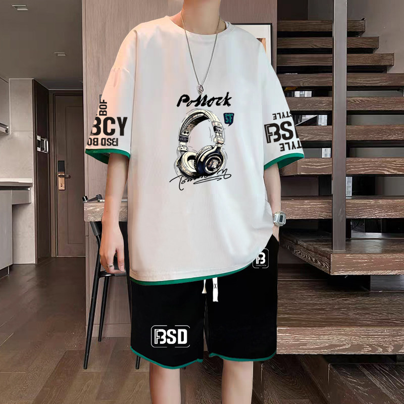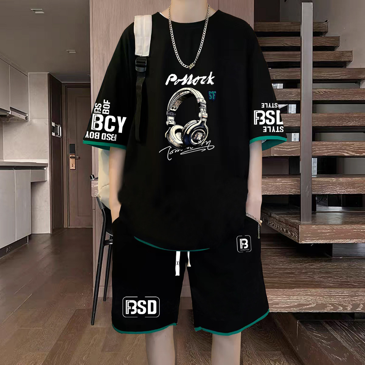 T恤套装 2026夏季 新款 男生短袖 显瘦圆领百搭上衣 潮流高街宽松大码