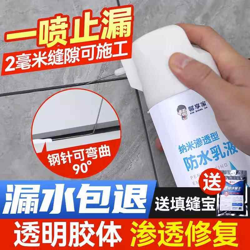 卫生间防水渗透剂补漏免砸砖厕所浴室瓷砖缝隙漏水填缝透明喷剂胶由