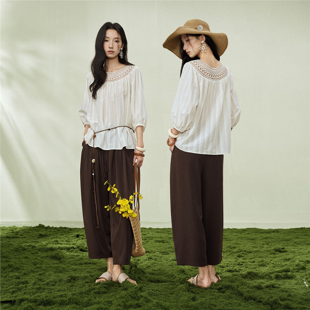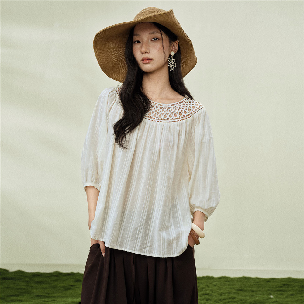 设计师款 立体条纹镂空圆领七分袖 衬衫 女18346804 佐丹奴2026年夏季由