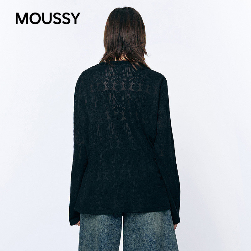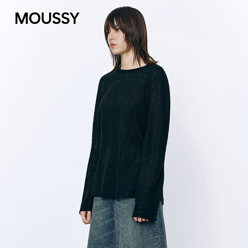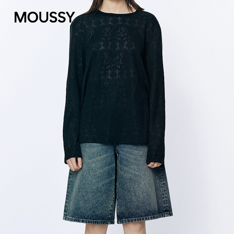 女028JSC80 MOUSSY 1022 针织衫 慵懒性感暗纹圆领长袖 2026春季 新品由