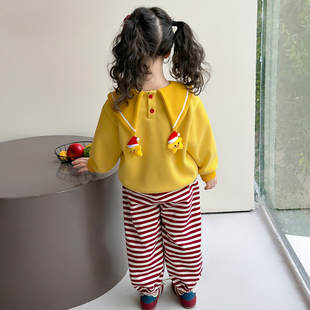 小女孩娃娃领韩版 卫衣两件套女宝宝星星人衣服秋 套装 女童洋气春装由