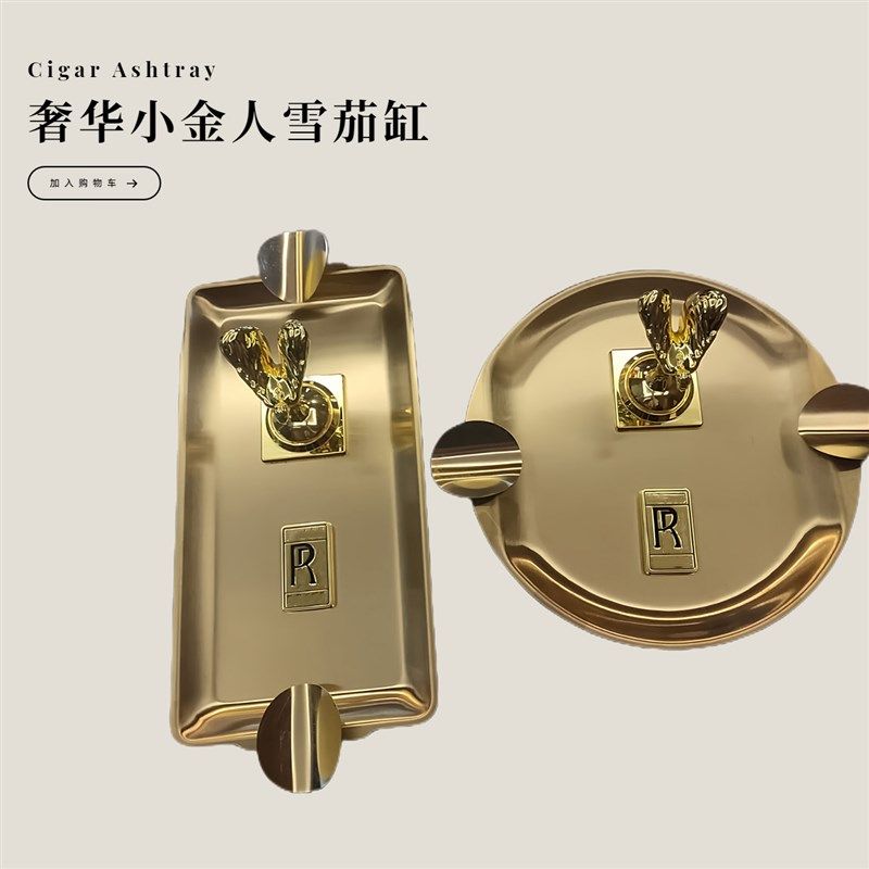 烟缸茶几桌面个性 R轻奢小金人 土豪金烟灰缸 雪茄缸 饰摆件 潮流装由