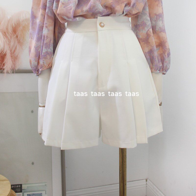 百搭显瘦百褶高腰裤 白色压褶短裤 裙 短裤 温柔甜美西装 2021夏季 女装
