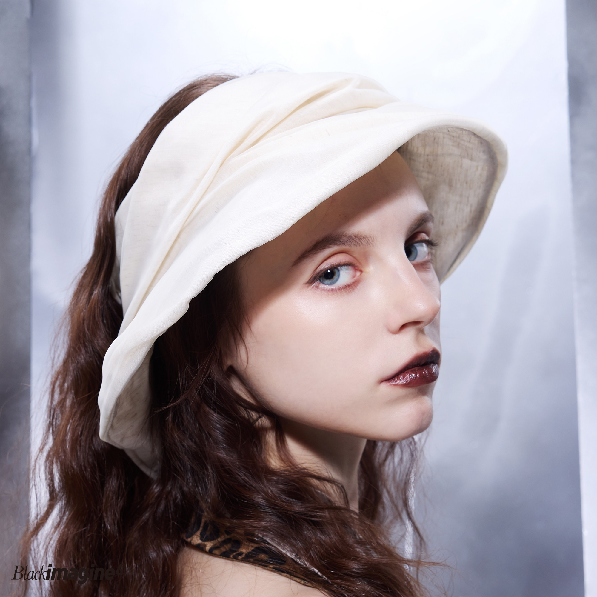 | 褶皱网纱发带空顶帽遮阳防晒夏日度假海滩折叠 imagine6 black由
