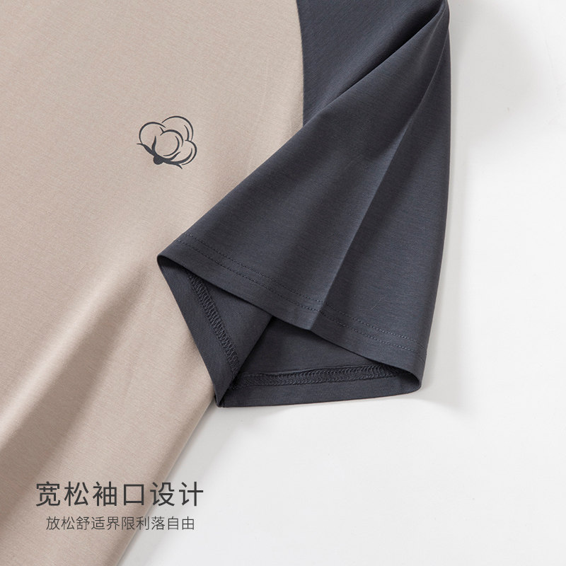 撞色青少年家居服2025新款 莫代尔男士 睡衣上衣单件短袖 薄款 春夏季