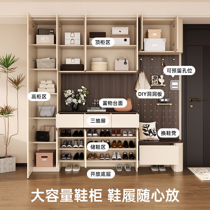 柜家用门口玄关柜储物柜一体靠墙洞洞板置物衣帽架 中古风入户门鞋