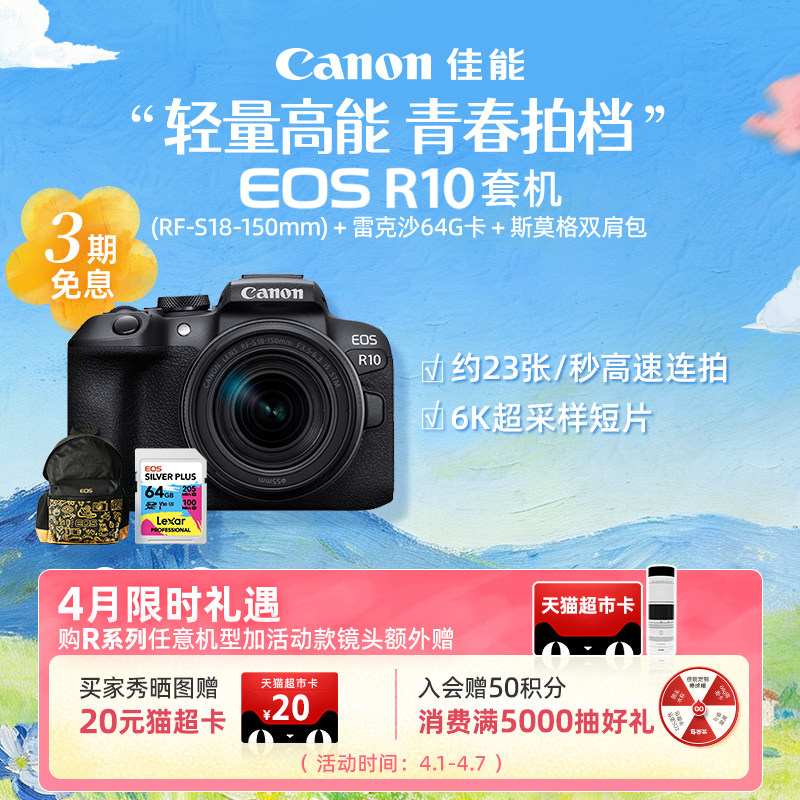 为您提供商品佳能EOS 旗舰店 Canon 套机青春专微学生新手4K短片相机 R10机身的详细介绍,