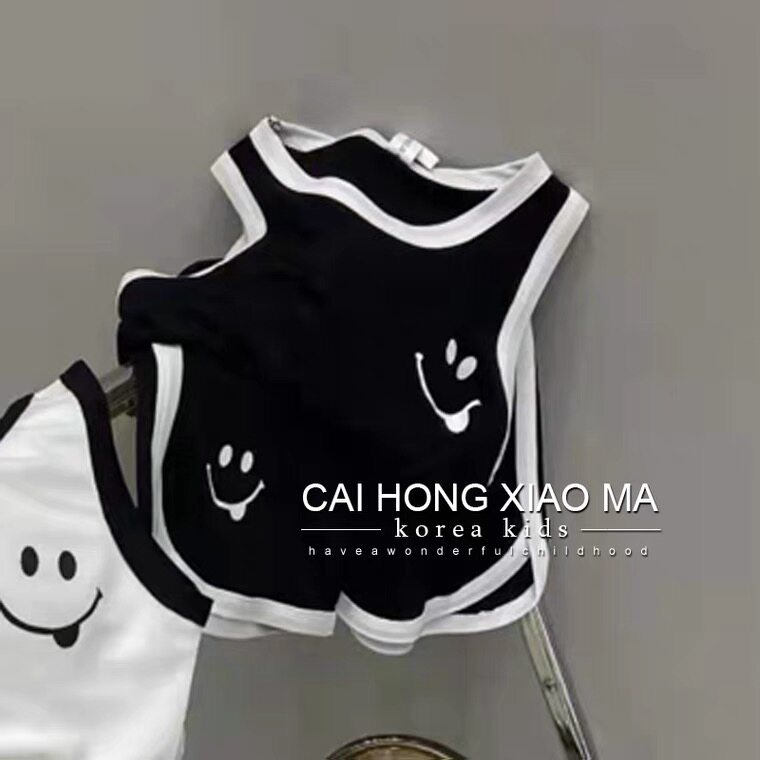 男女童笑脸背心上衣短裤 运动休闲宽松两件套 儿童洋气套装 2025夏装由