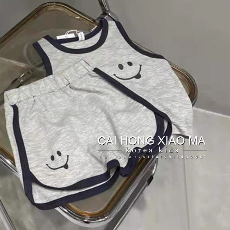 为您提供商品男女童笑脸背心上衣短裤 运动休闲宽松两件套 儿童洋气套装 2025夏装的详细介绍,