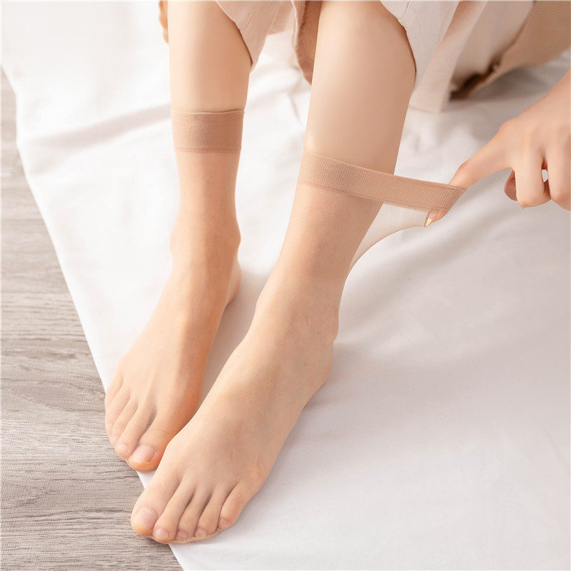 薄款 防勾丝透明耐磨中筒无痕肉色隐形水晶短袜 夏季 防滑丝袜女短款