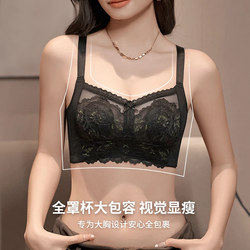 遐 大胸显小全罩杯文胸防下垂大码 显瘦蕾丝薄款 内衣女 倾城之恋