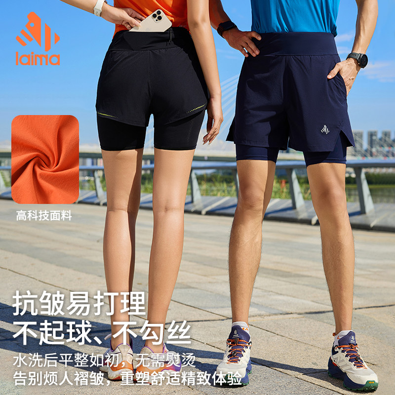 为您提供商品健身速干休闲二合一跑步短裤 莱马 假两件四分运动短裤 夏季 男女款的详细介绍,