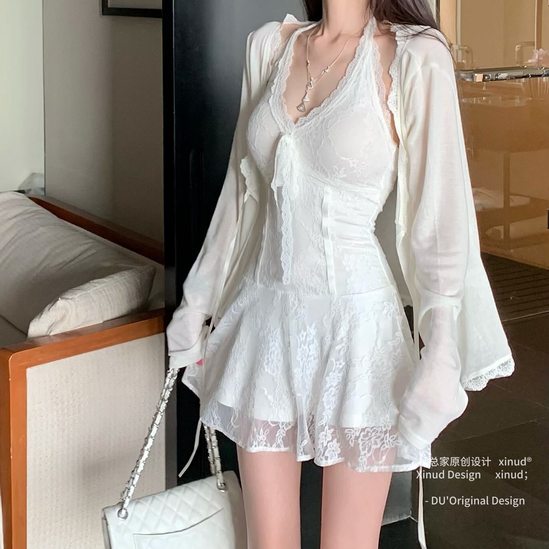 杜总家 原创甜欲小白花少女挂脖收腰连衣裙温柔春两件套 港岛甜茶由