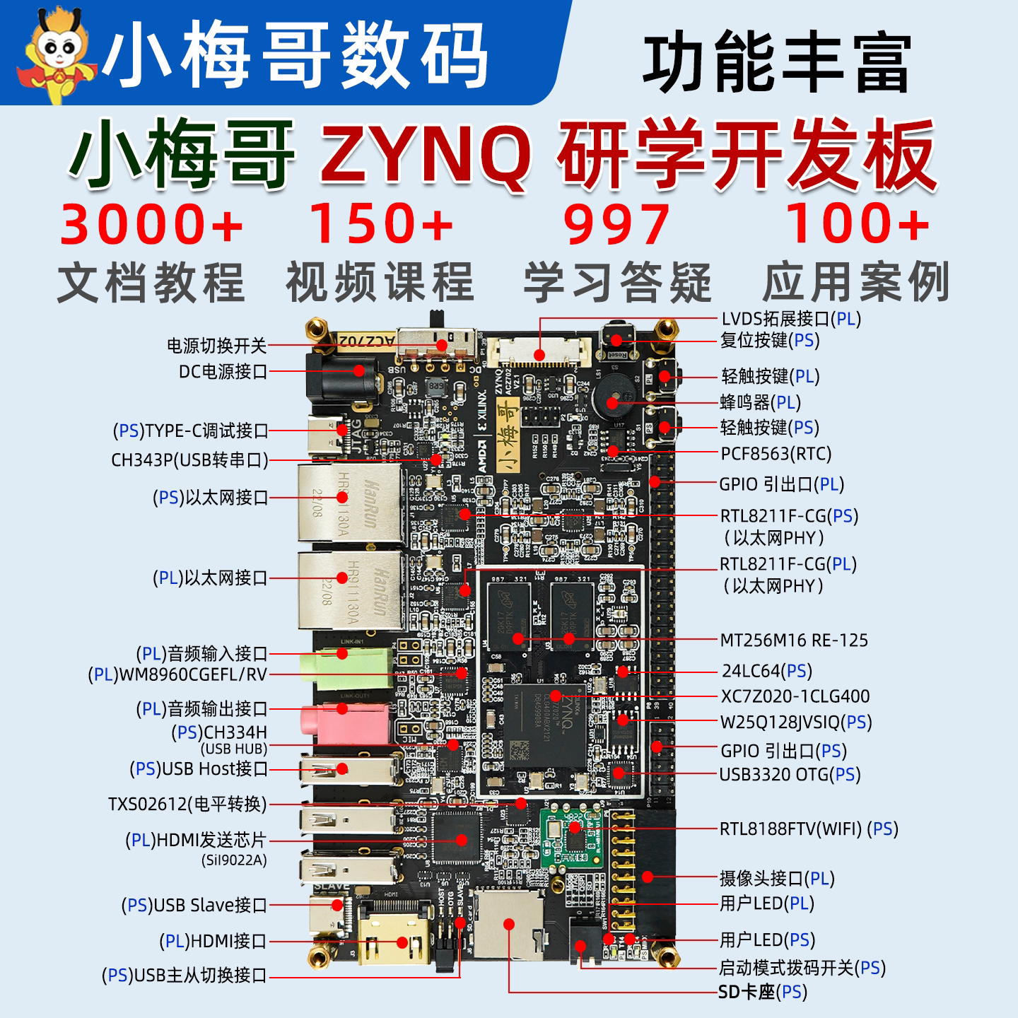 教学板ARM Zynq FPGA开发板7010 7020Xilinx 小梅哥ACZ702 Linux由