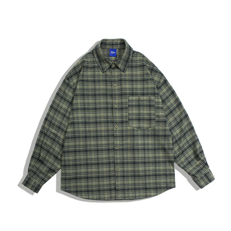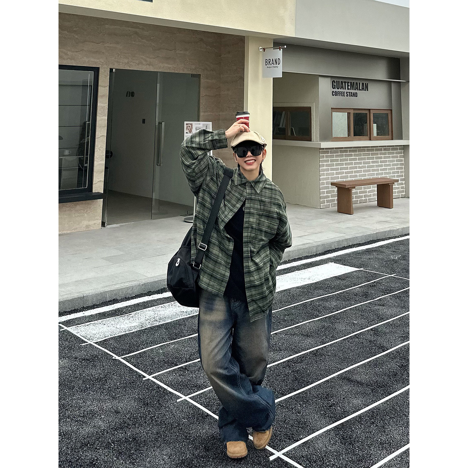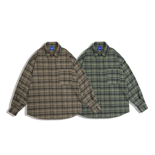 衬衫 春秋百搭通勤衬衣男女宽松慵懒外套 复古古着格子长袖 XBRO美式
