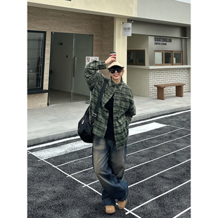 衬衫 春秋百搭通勤衬衣男女宽松慵懒外套 复古古着格子长袖 XBRO美式由