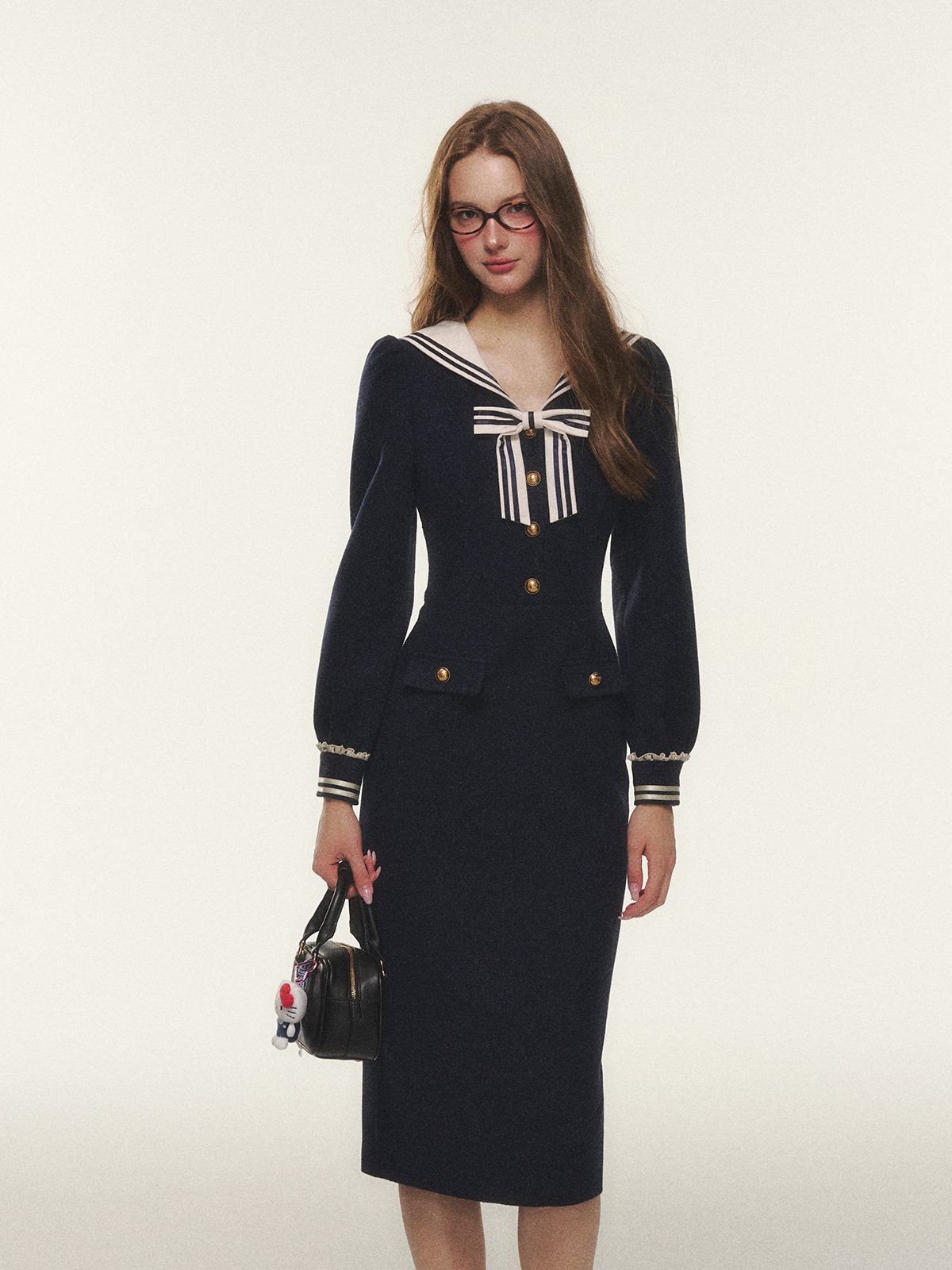 ANNATTO 学院风海军领蝴蝶结长袖 连衣裙中长款 裙子女 2024年秋季