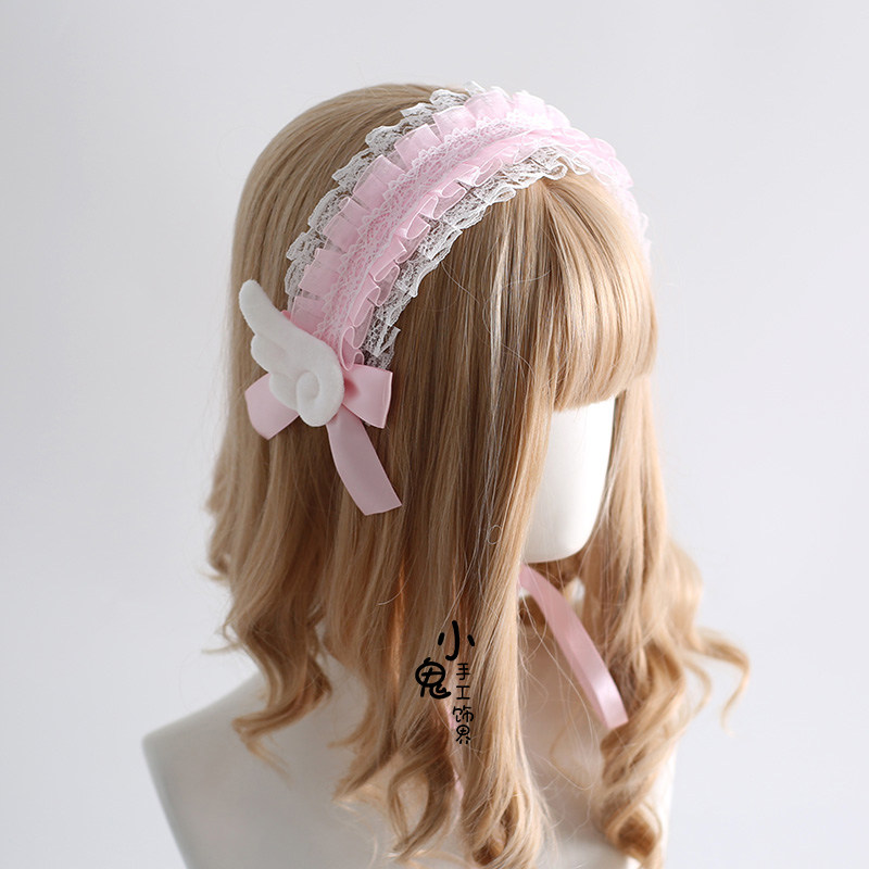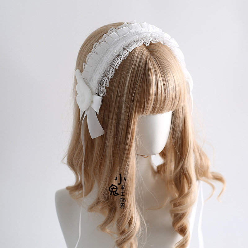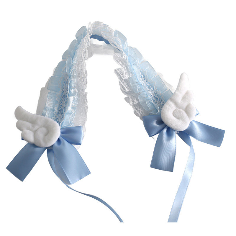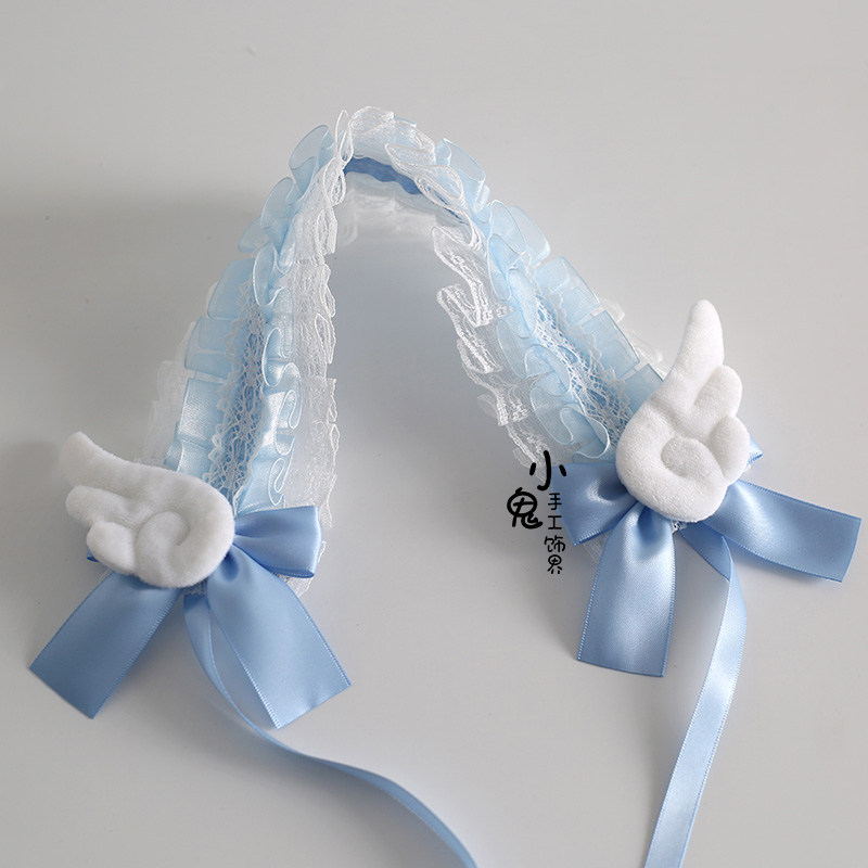 蓝白日系量产型头饰黑白天使翅膀发带哥特暗黑Lolita头饰亚文化由