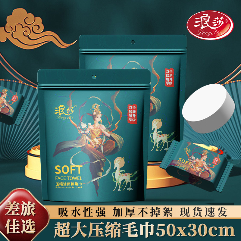 浪莎国潮一次性压缩毛巾旅行洁面巾便携式 加厚加大 粉丝专享