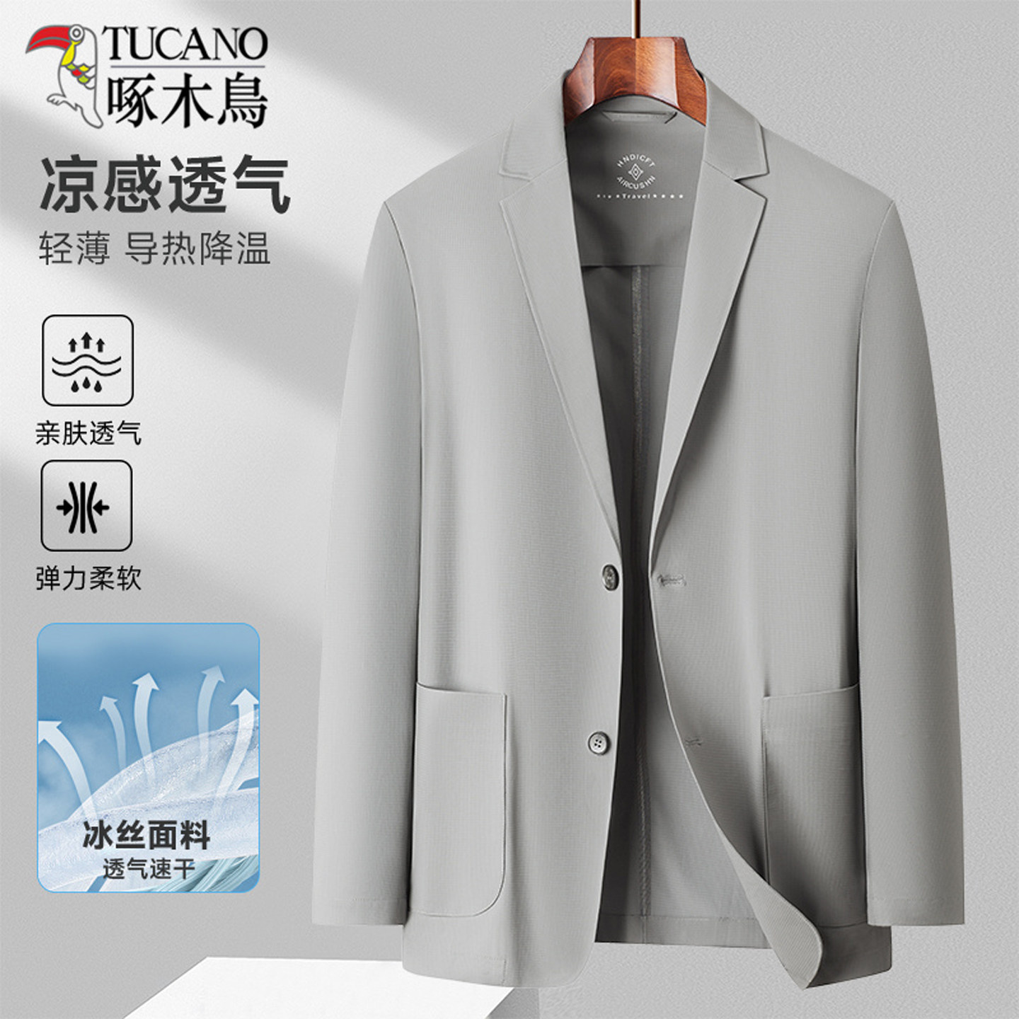 西服新款 啄木鸟夏季 薄款 男士 外套潮 休闲透气弹力抗皱冰丝防晒西装由