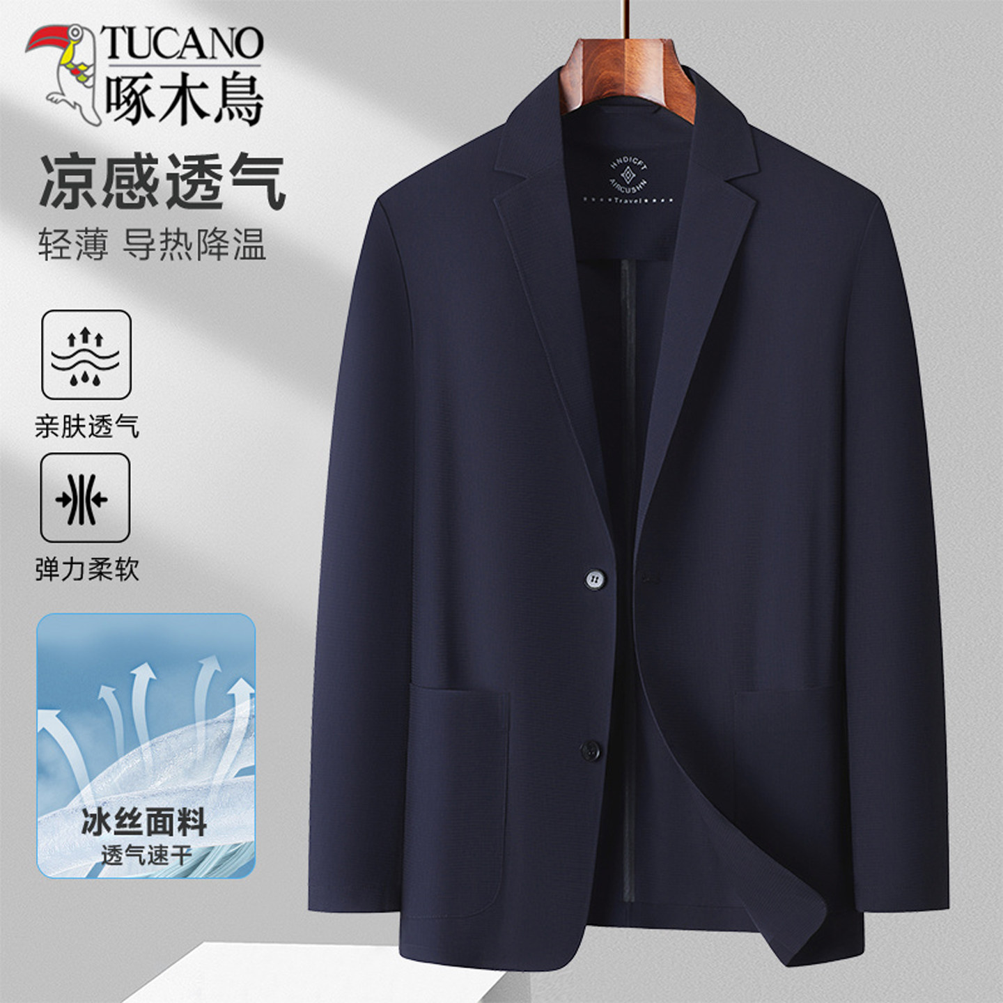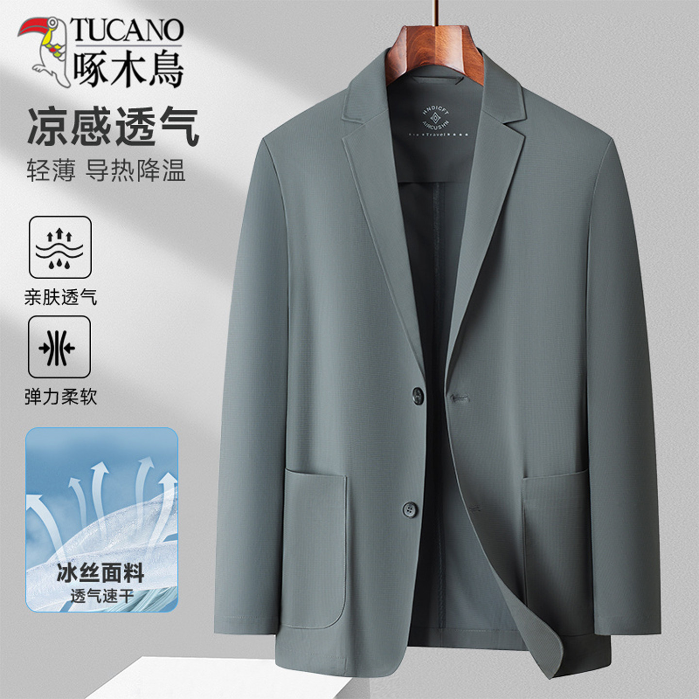 为您提供商品西服新款 啄木鸟夏季 薄款 男士 外套潮 休闲透气弹力抗皱冰丝防晒西装的详细介绍,