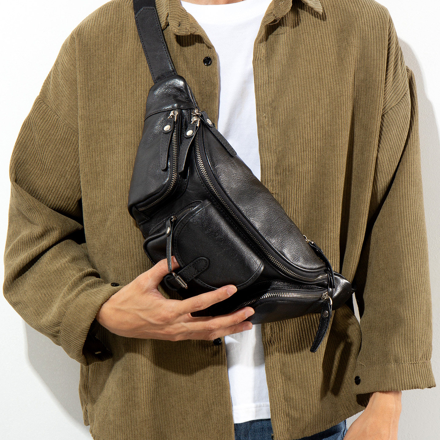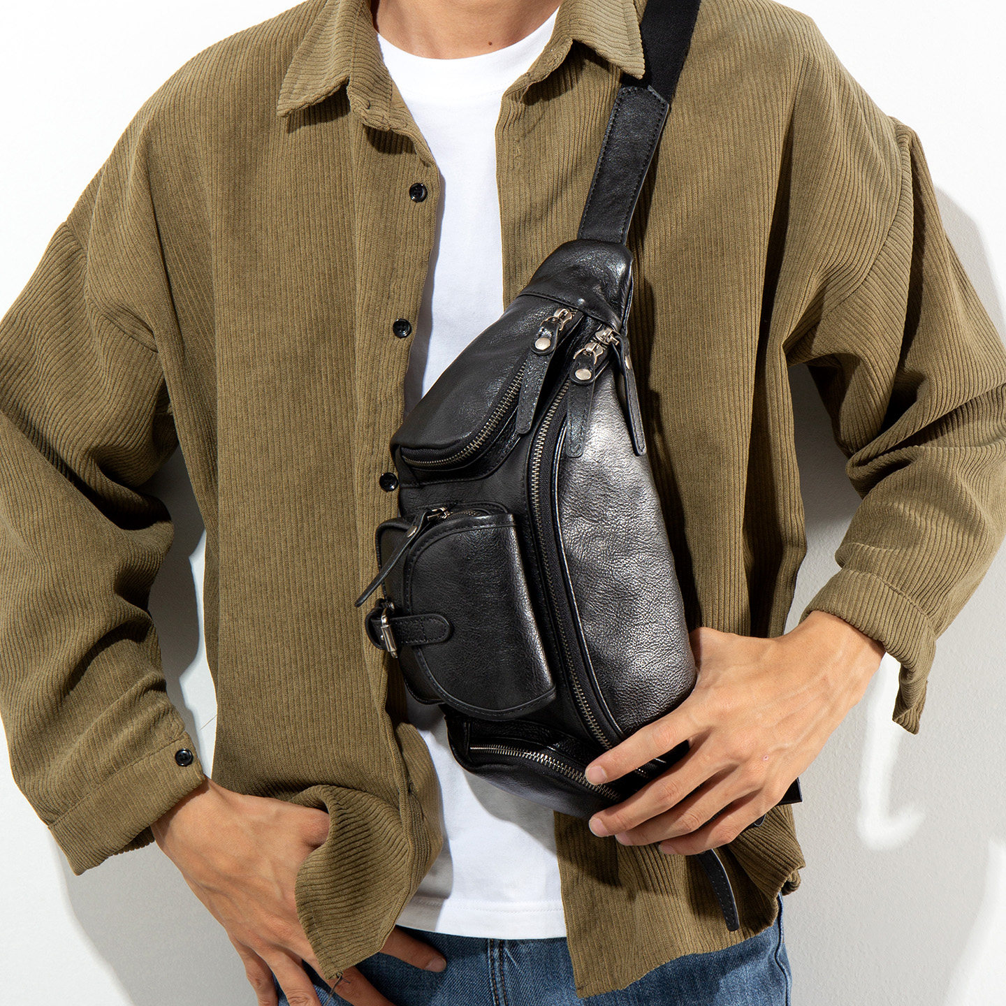 麦为街头潮流真皮胸包男包休闲斜挎包头层牛皮腰包多功能单肩包潮由