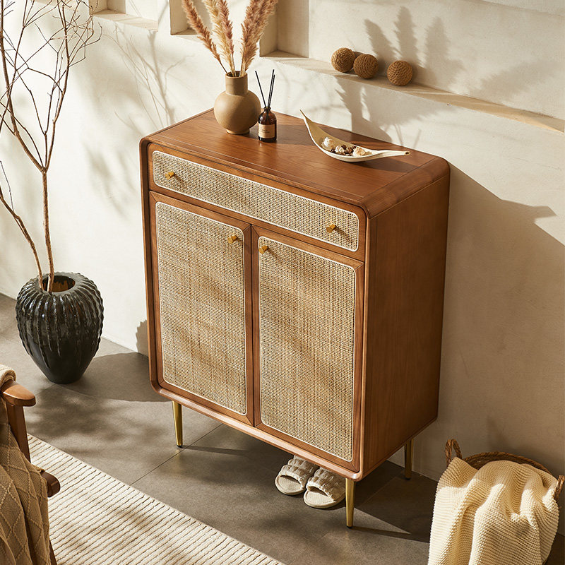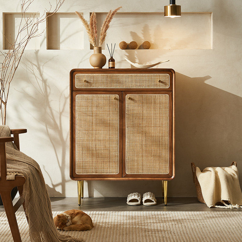 藤编大师实木鞋 简约分层隔板收纳柜子 柜玄关入户家用门口藤艺时尚
