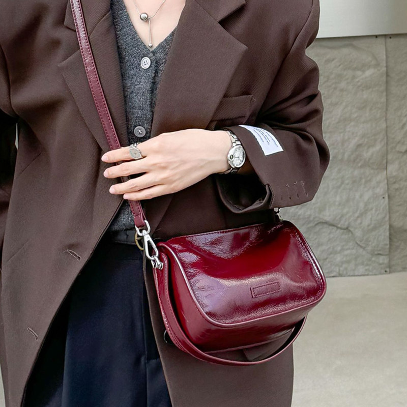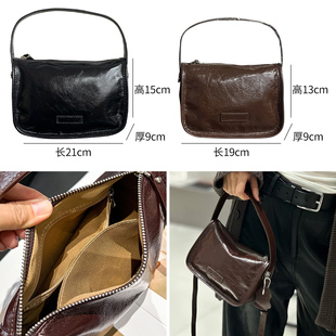 简约真皮手提包软皮休闲马鞍包女包 油蜡头层牛皮单肩斜挎小包时尚