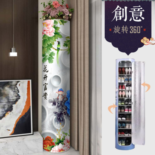 柜圆柱形大容量立体家用门口一体靠墙创意多层收纳柜 360度旋转鞋由
