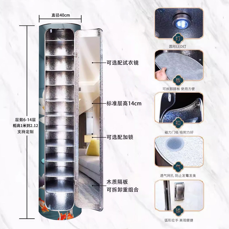 为您提供商品柜圆柱形大容量立体家用门口一体靠墙创意多层收纳柜 360度旋转鞋的详细介绍,