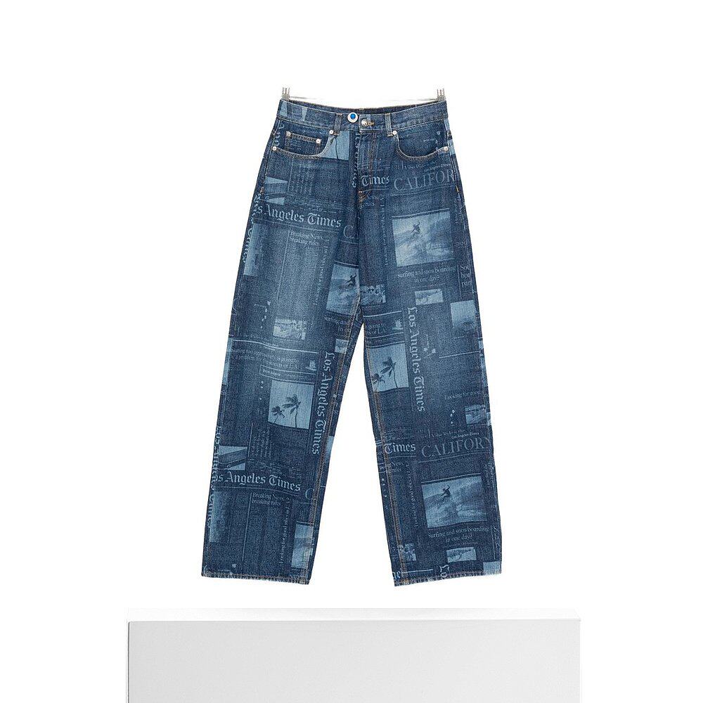 男宽松直筒cleanfit简约闪电纹长裤 复古水洗潮牌牛仔裤 AWRB美式