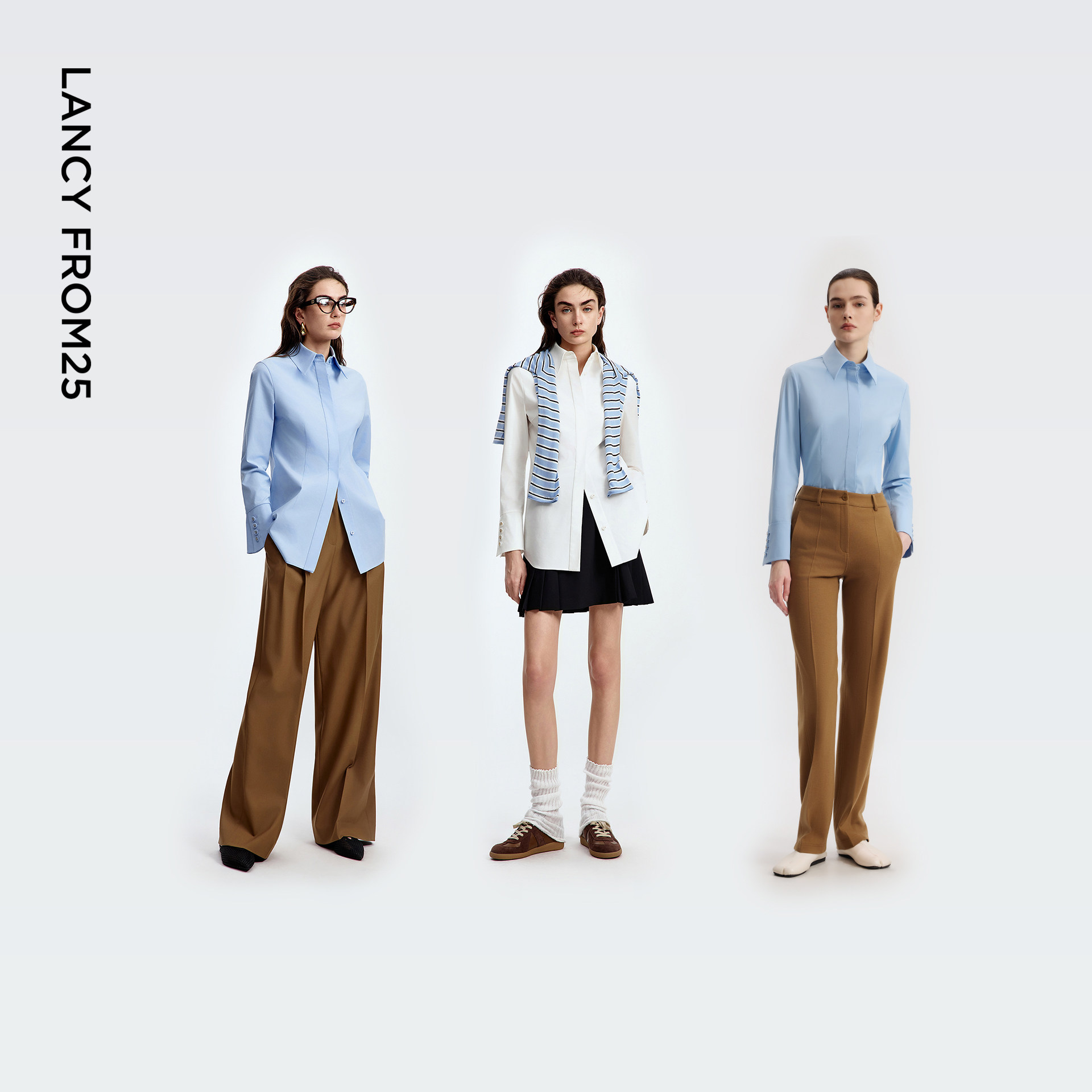 新款 女 高智秋季 气质百搭上衣时尚 高智衣橱 朗姿25收腰尖领衬衫由
