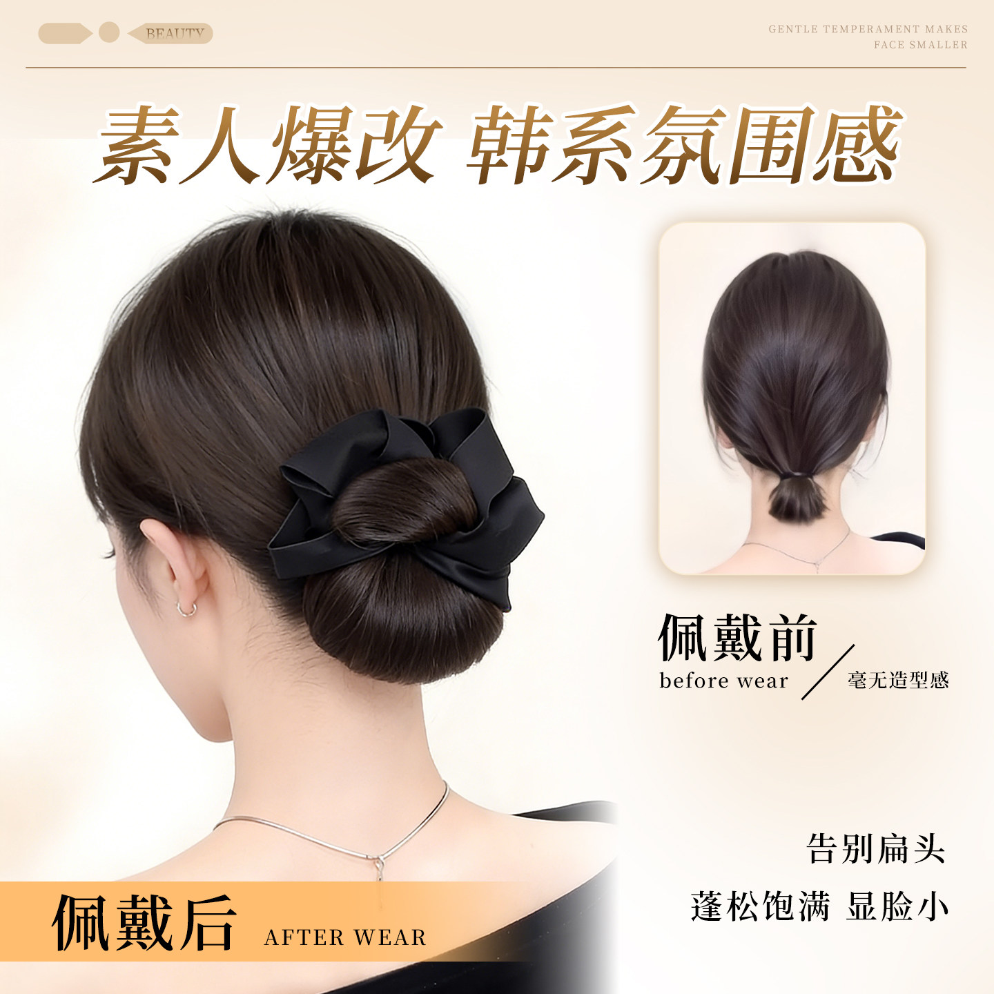 低扎丸子头假发抓夹盘发发包花苞头仿真发自然蓬松盘发神器假发圈