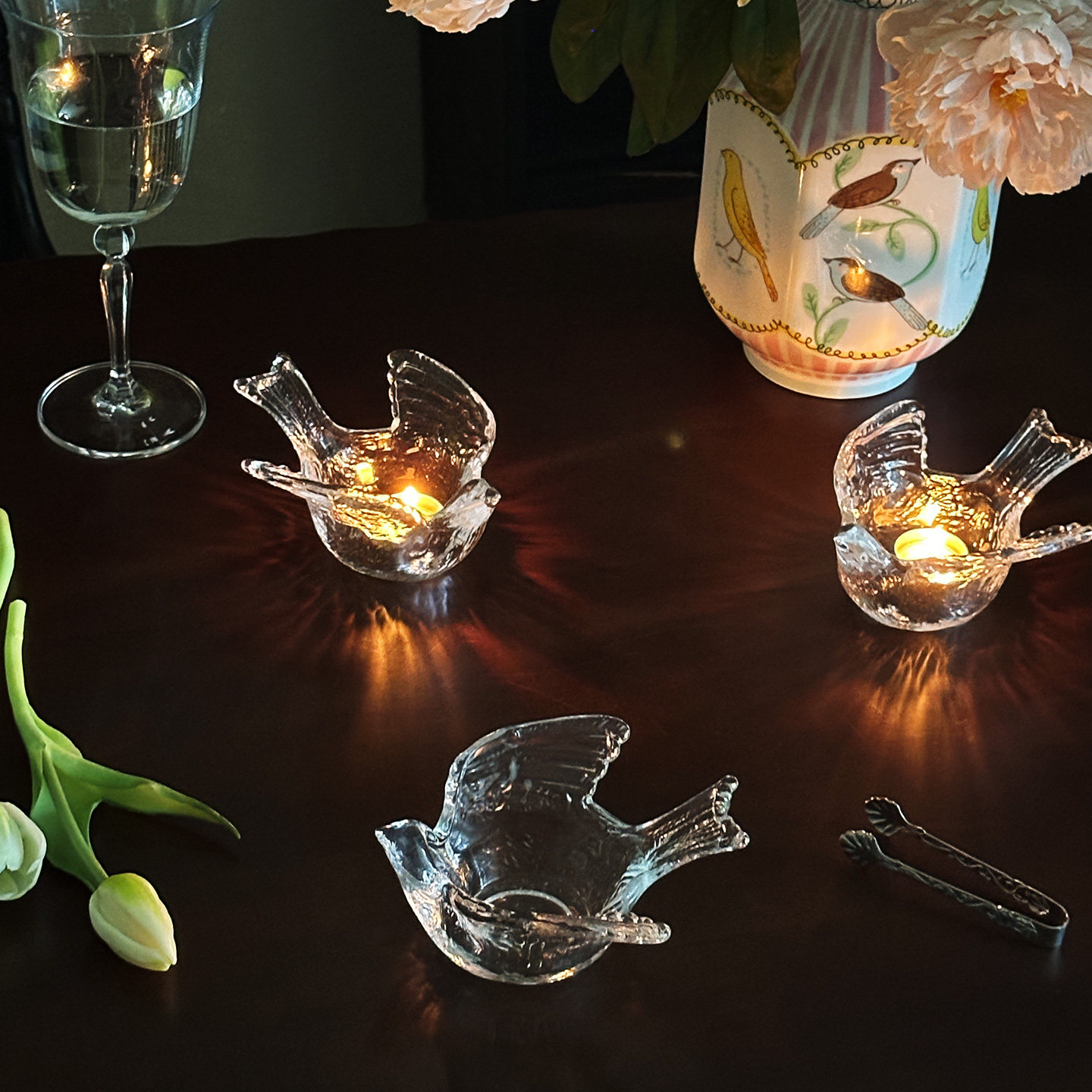复古蜡烛蜡烛台 餐厅烛光晚餐中古ins风 氛围感 小鸟透明玻璃烛台