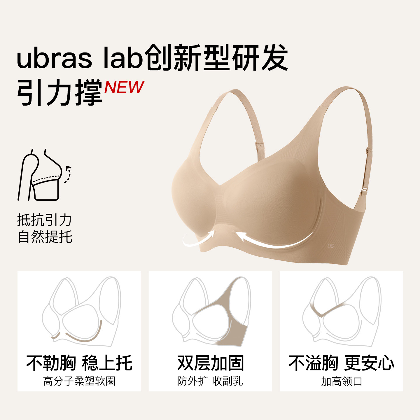 为您提供商品ubras升级引力撑内衣女大胸显小收副乳防下垂轻薄文胸罩秋冬新品的详细介绍,