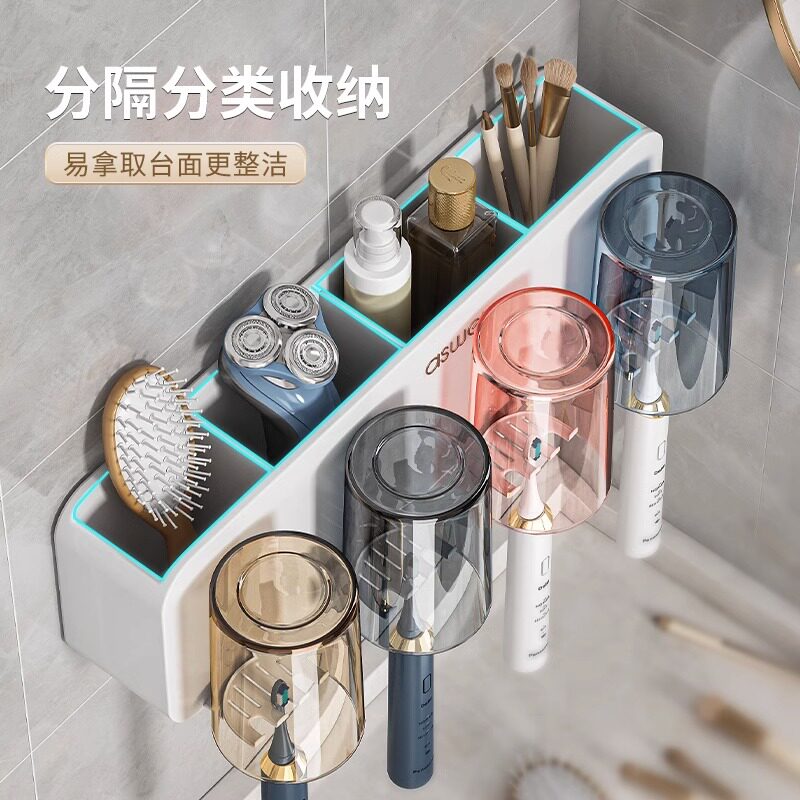 免打孔卫生间牙具座牙膏收纳浴室 牙刷牙杯壁挂置物架电动牙刷套装