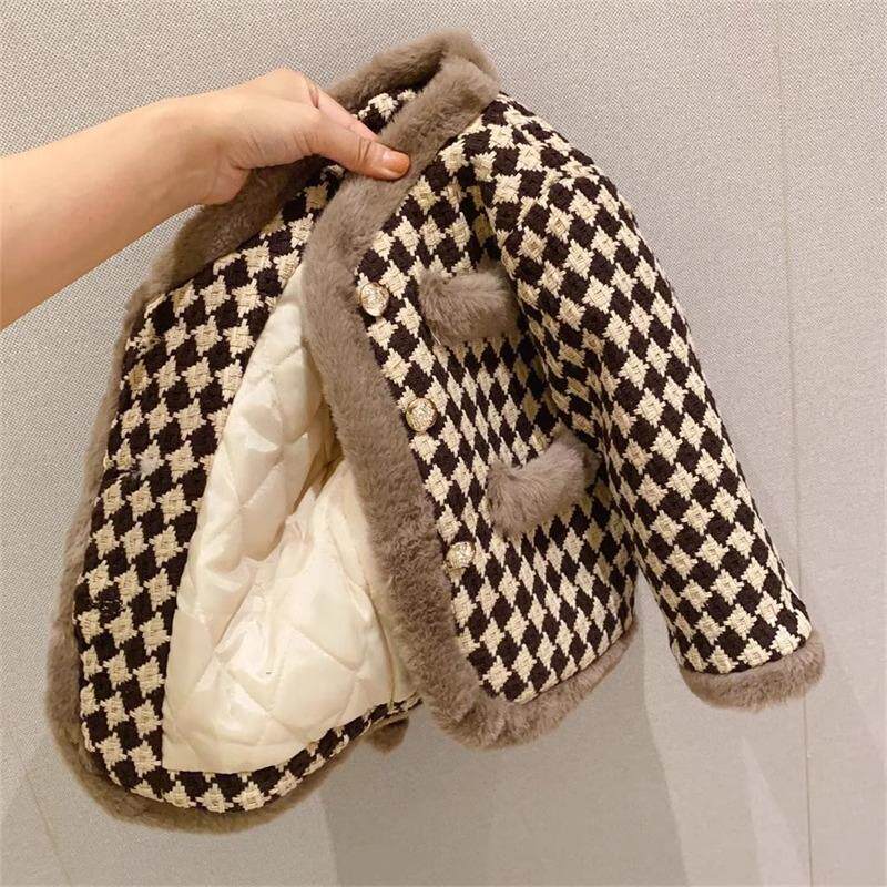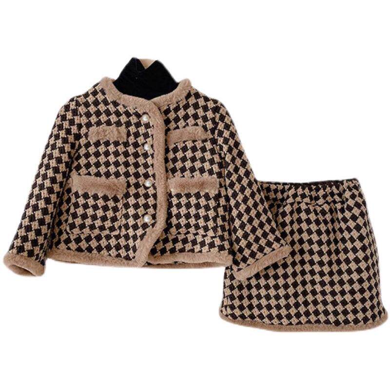 新款 宝宝保暖外套两件套 冬装 2026女童加厚加棉小香风洋气毛毛套装