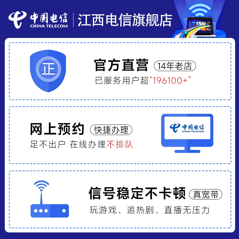 为您提供商品江西电信宽带办理新装 南昌赣州九江抚州宜春上饶 宽带套餐上门安装的详细介绍,