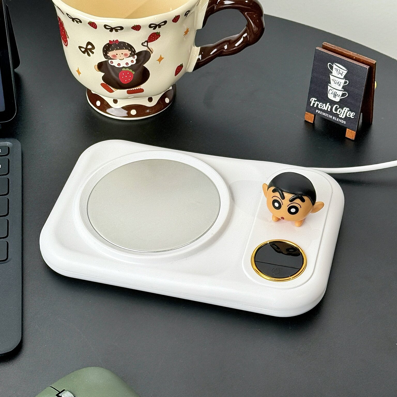 蜡笔小新办公恒温加热杯垫热牛奶杯子底座55度保温水创意生日礼物