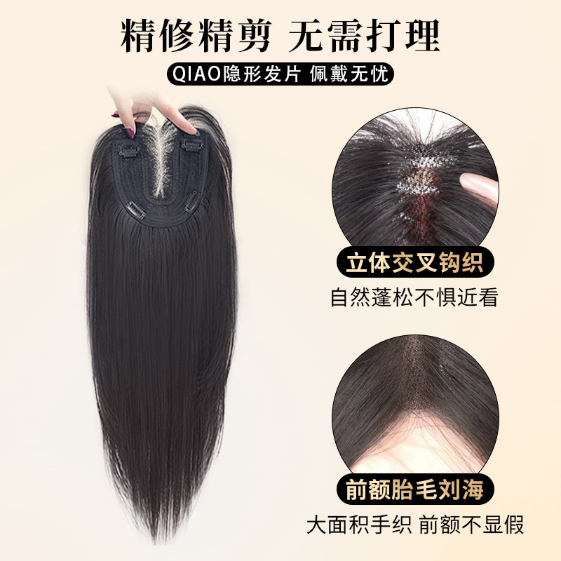 假发女片头顶无痕蓬松增发量日常整顶黑长直假发头套 不用戴发网