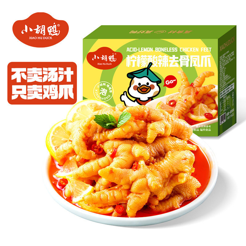 为您提供商品小胡鸭柠檬酸辣味去骨鸡爪330g脆笋无骨凤爪鸭掌办公小吃独立包装的详细介绍,
