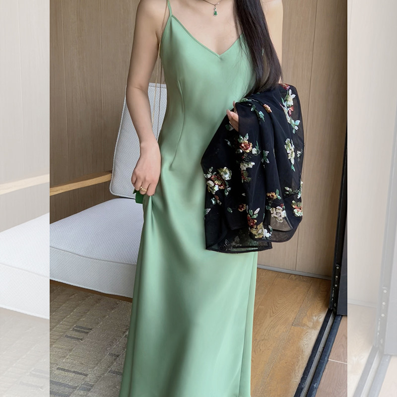Middletone dio 秀款 精仿丝毛光泽感收腰吊带连衣裙礼服 赫本裙