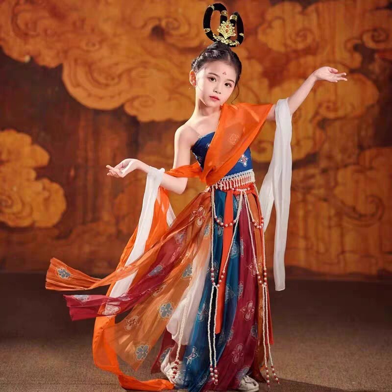 祈祷表演服 敦煌舞蹈服儿童飞天乐鼓演出服反弹琵琶异域风情千年